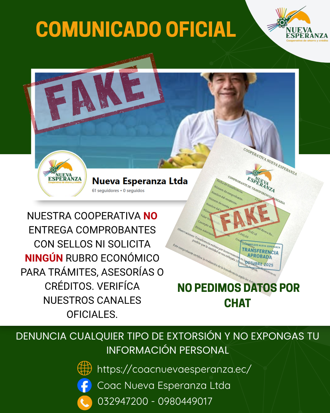 La Cooperativa de Ahorro y Crédito “Nueva Esperanza” Ltda, nace de la construcción y acción de sueños de varios chimboracenses que buscan el desarrollo sostenible y justo de su pueblo, durante estos 9 años de trabajo ha podido consolidar la generación de oportunidades a los sectores más desprotegidos y olvidados de la sociedad, como agricultores, artesanos, mujeres, niños, jóvenes, migrantes.