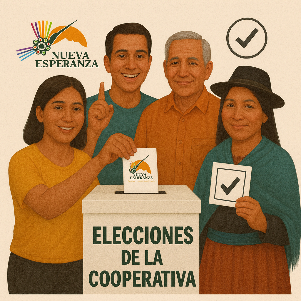 La Cooperativa de Ahorro y Crédito Nueva Esperanza Ltda. comunica a todos sus socios que se encuentra en desarrollo el Proceso Electoral 2025, conforme a lo establecido en nuestros estatutos y en la normativa vigente. Este espacio digital ha sido habilitado para difundir de manera oficial, transparente y oportuna la información relacionada con la convocatoria, el cronograma, la participación de candidatos y los resultados del proceso, en cumplimiento de los principios de democracia y gobernanza cooperativa.